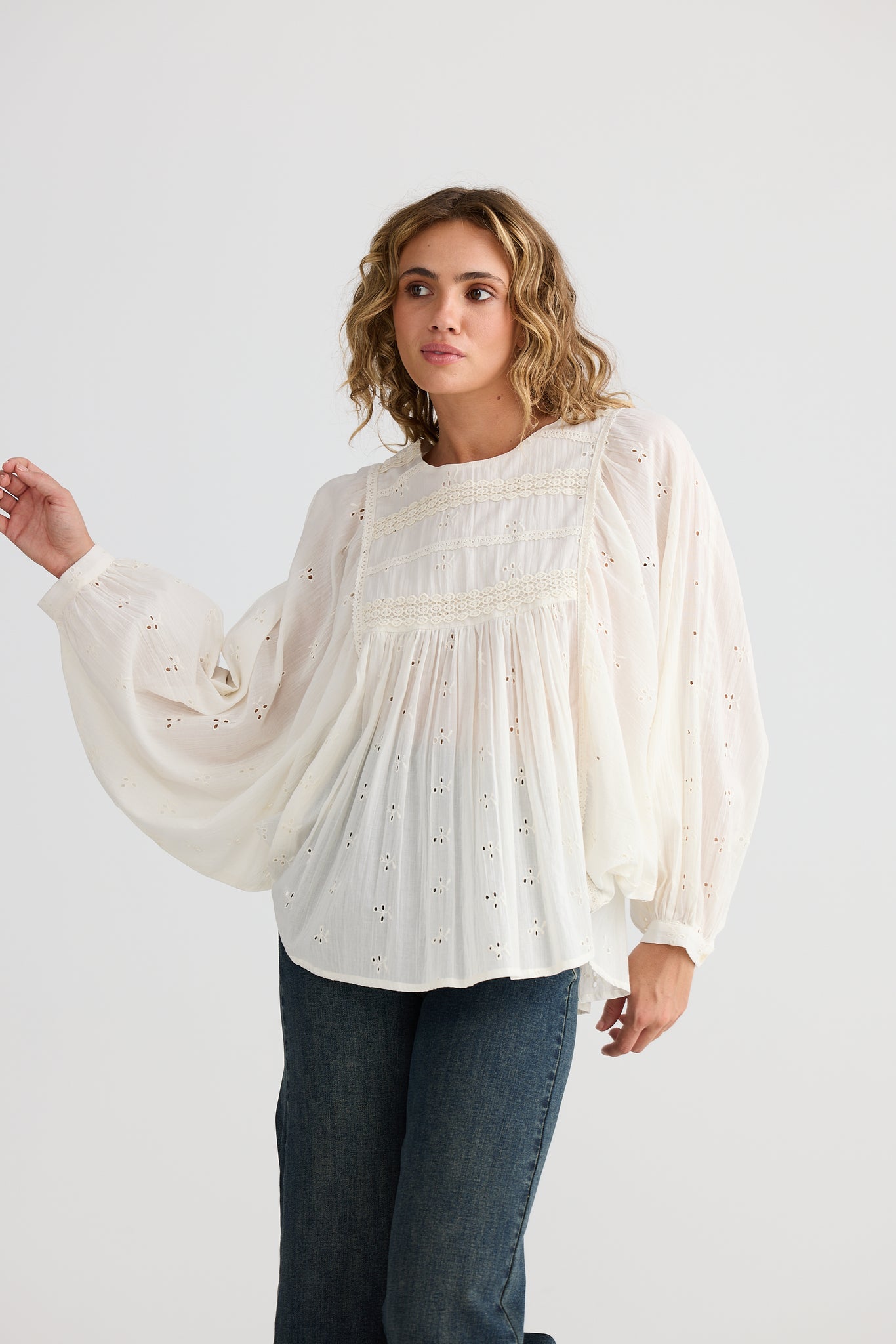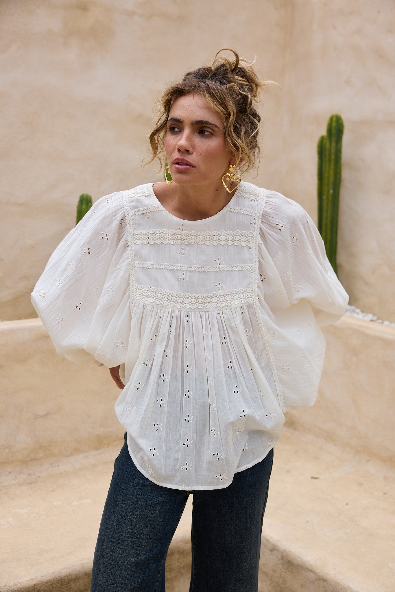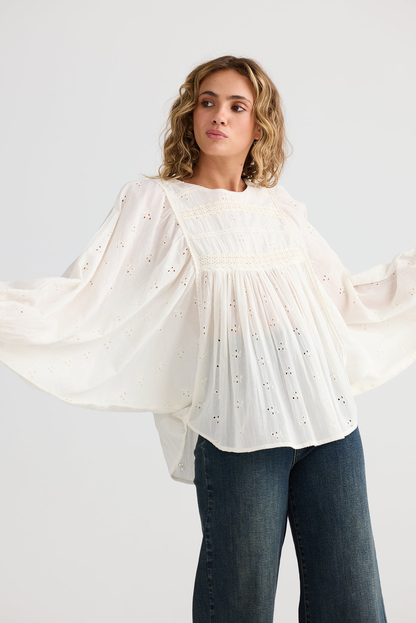 Bring a touch of whimsy to your wardrobe with the Tinker Top in off-white. This embroidered blouse combines soft, airy fabric with charming details that brighten any outfit. Perfect for those who love to blend comfort with a playful, unique style.