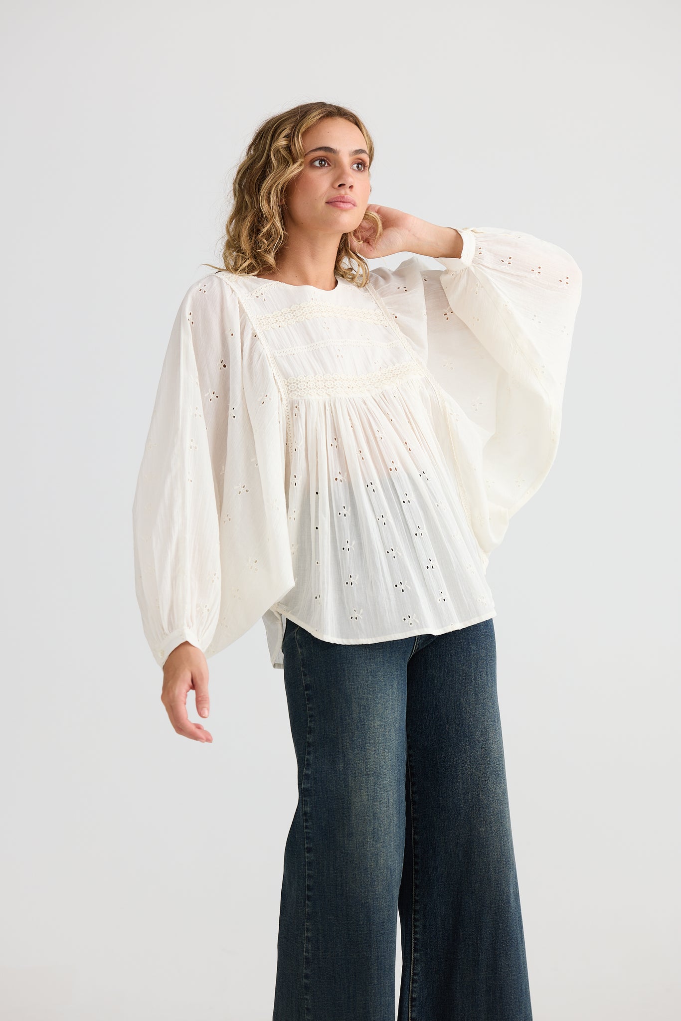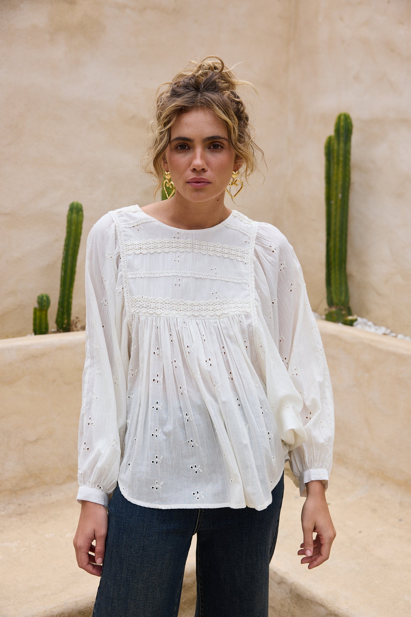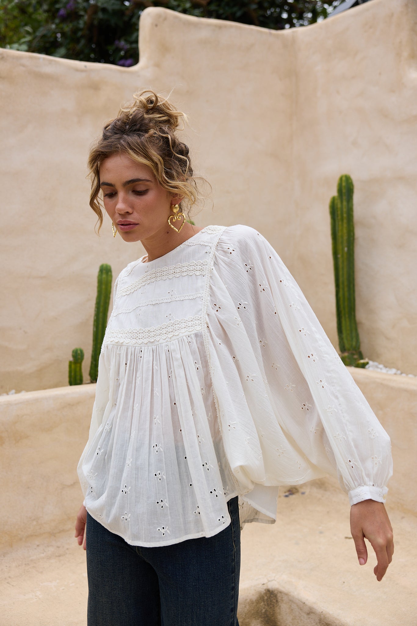 Bring a touch of whimsy to your wardrobe with the Tinker Top in off-white. This embroidered blouse combines soft, airy fabric with charming details that brighten any outfit. Perfect for those who love to blend comfort with a playful, unique style.