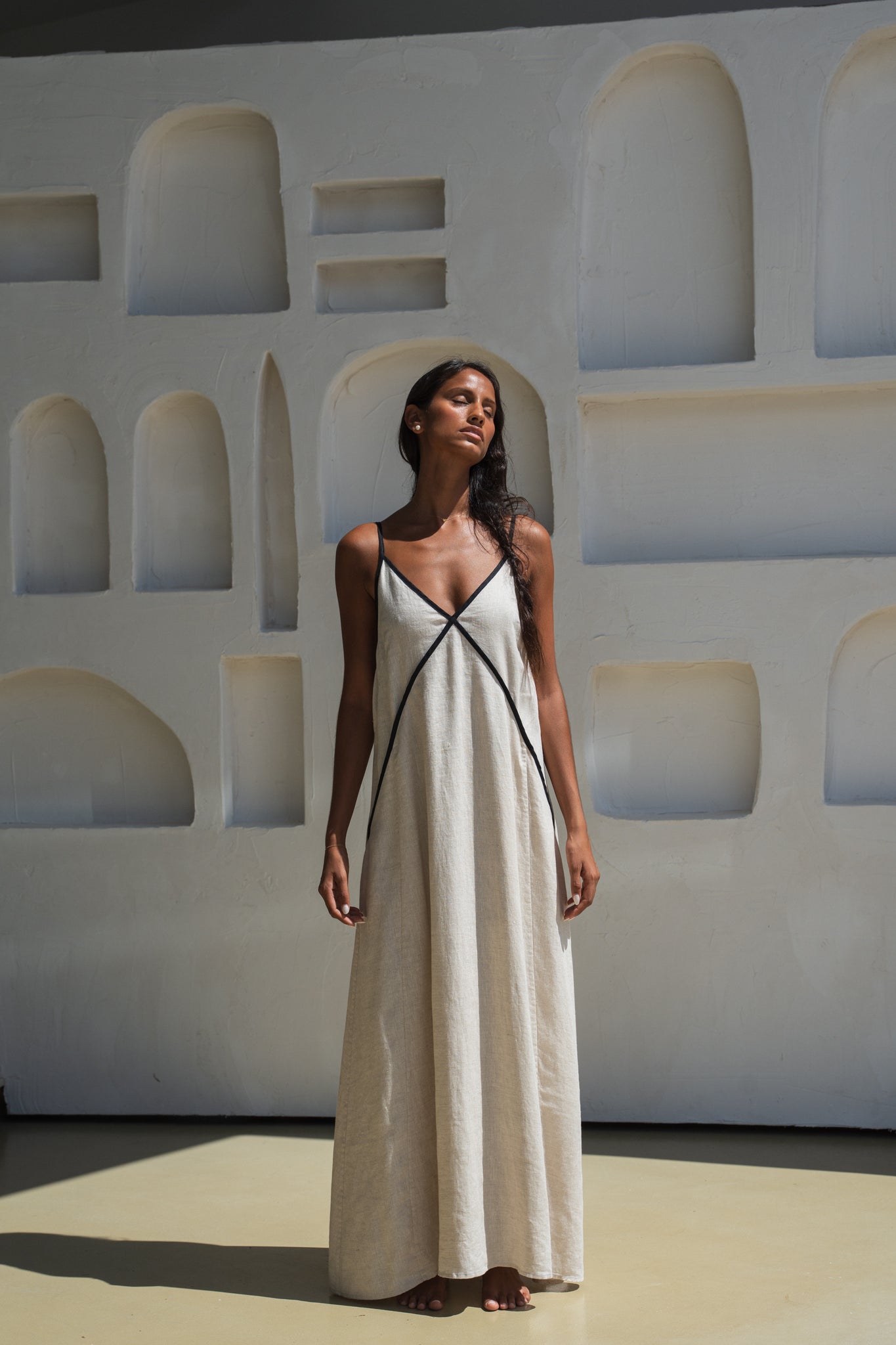 Azalea Linen Dress Oatmeal - Lilly Pilly