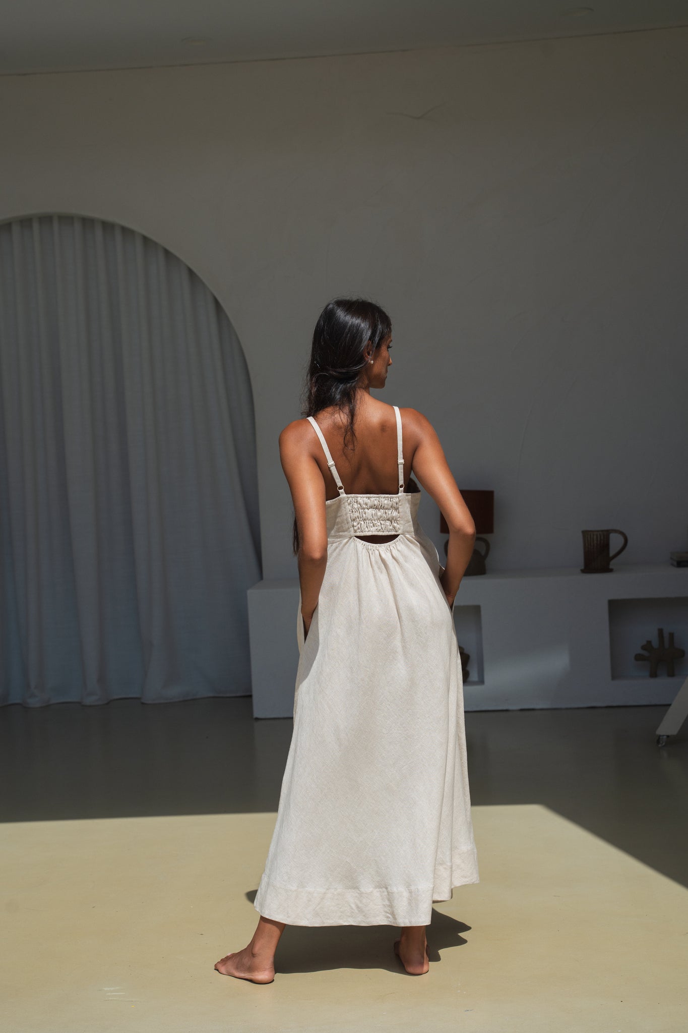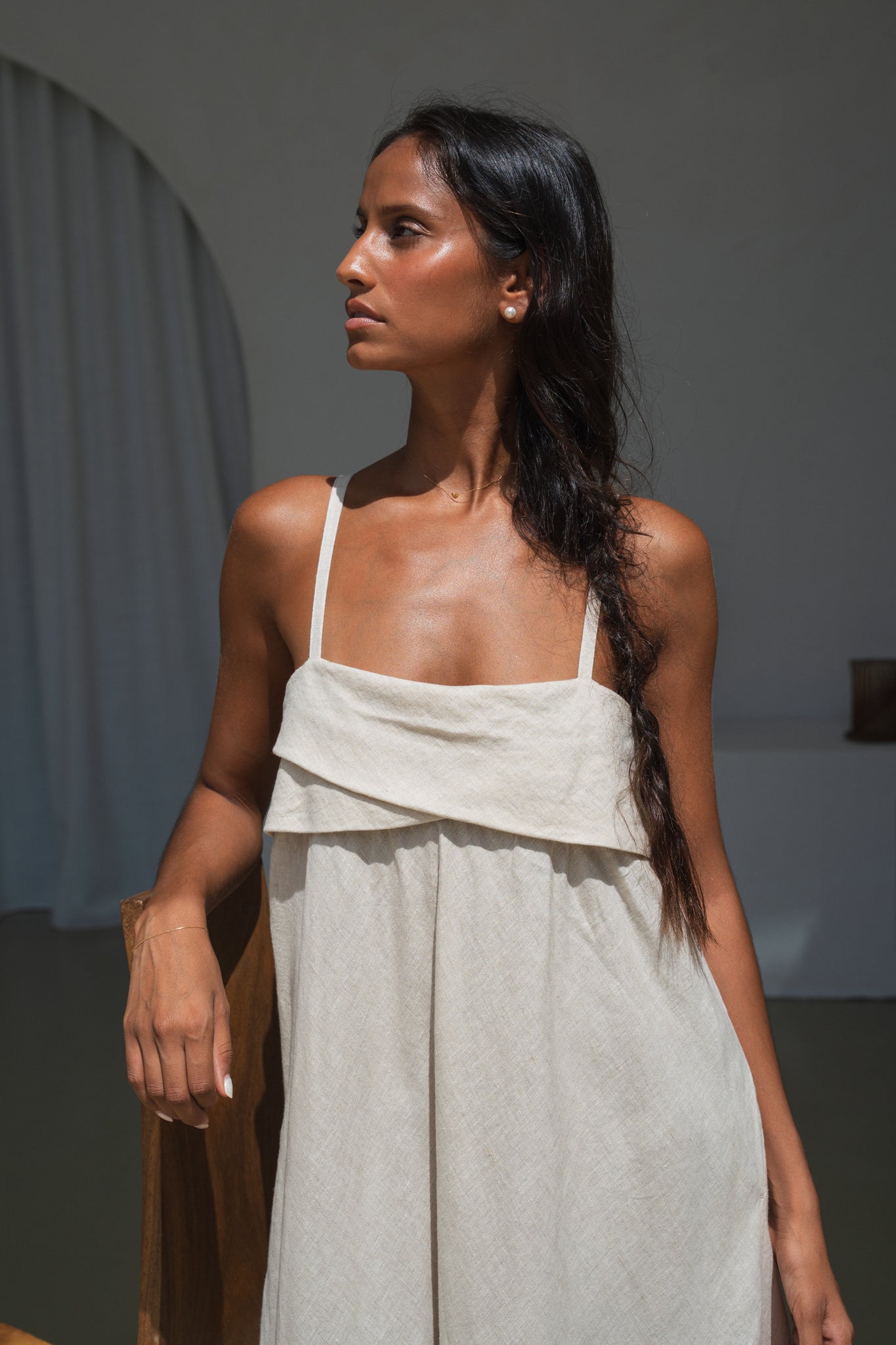 Elevate your wardrobe with the Kiko Linen Dress in Oatmeal, a sophisticated maxi dress crafted from breathable European linen. Its timeless design and natural fabric ensure comfort and elegance for any occasion, effortlessly combining style with ease. Perfect for those who appreciate understated luxury and lasting quality.