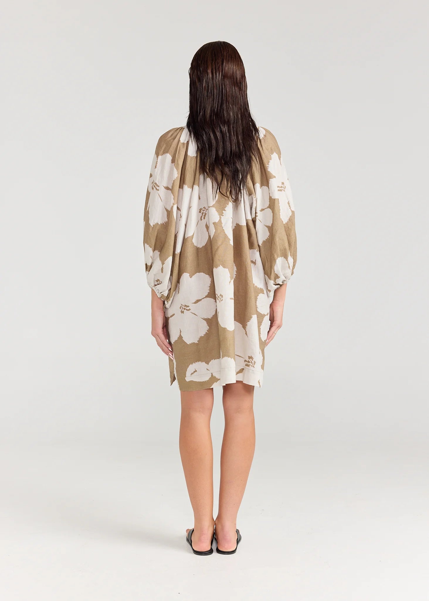 Crafted from 100% Linen, the Sangria Dress is the ultimate trans-seasonal mini. Featuring a gathered neckline with ties, feminine balloon sleeves with elasticated cuffs and side splits.