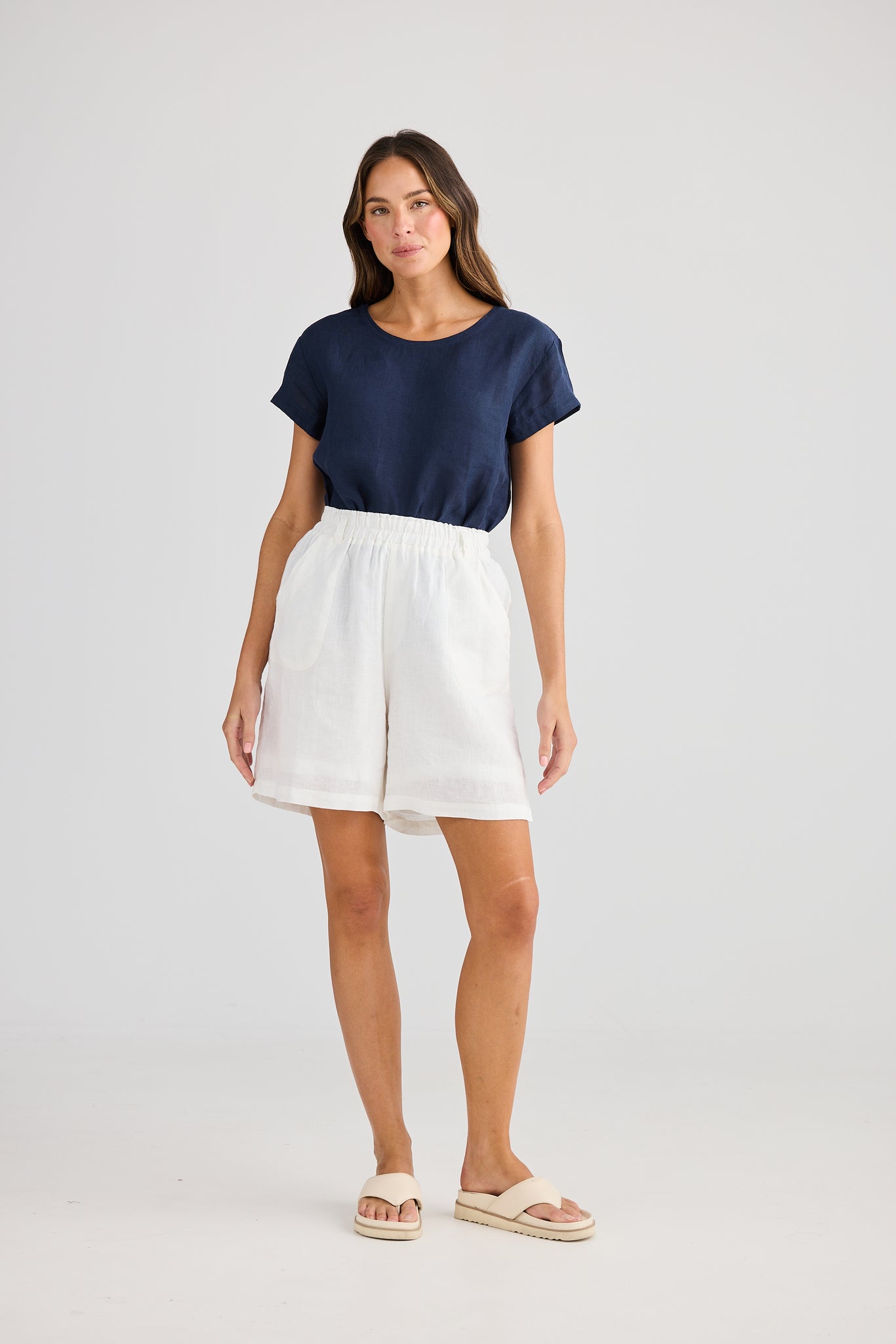 Crafted from 100% linen, these Captain Shorts in Navy by Holiday Trading Co offer exceptional breathability and lightweight comfort. Designed with a great length for a refined silhouette, they combine timeless style with practical ease—ideal for warm-weather wear or relaxed weekend outings. Their natural fabric ensures durability and enhanced airflow, keeping you cool while maintaining a polished look. Perfect for those seeking both sophistication and comfort in casual attire.
