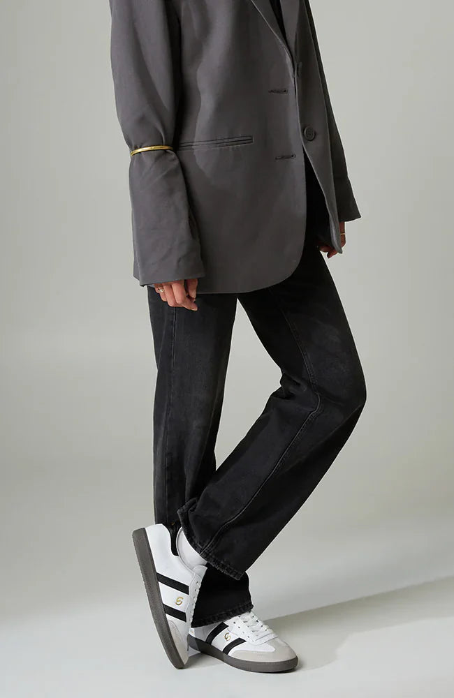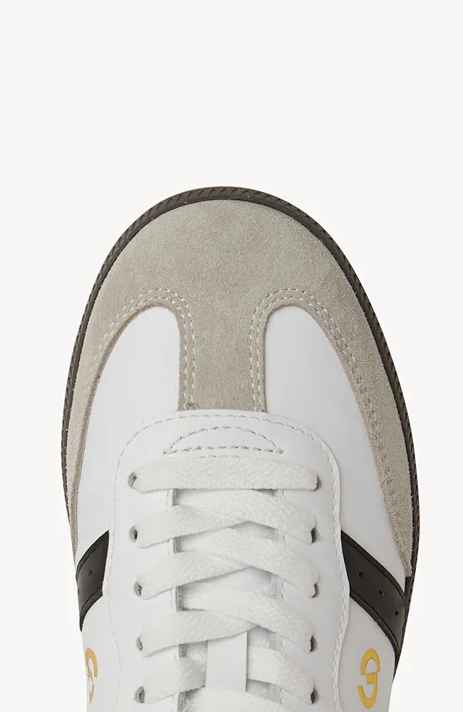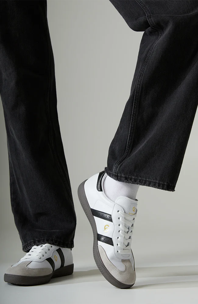 - Black soft art leather and white leather upper with parallel overlay design